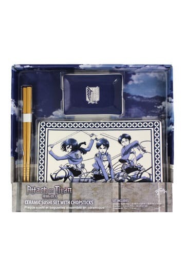 - "ATTACK ON TITAN - SET SUSHI IN CERAMICA CON BACCHETTE"