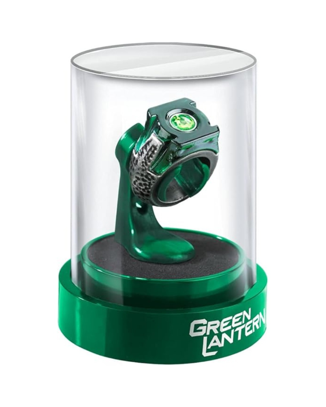 Questa replica dell'anello di Hal Jordan è stata creata da un calco dell'anello reale utilizzato nel film! Viene fornito con esposizione in una confezione regalo. Disponibile in una misura di anello da uomo di 11, anche se l'anello è solo una replica di scena e non è pensato per essere indossato. Prodotto The Noble Collection.