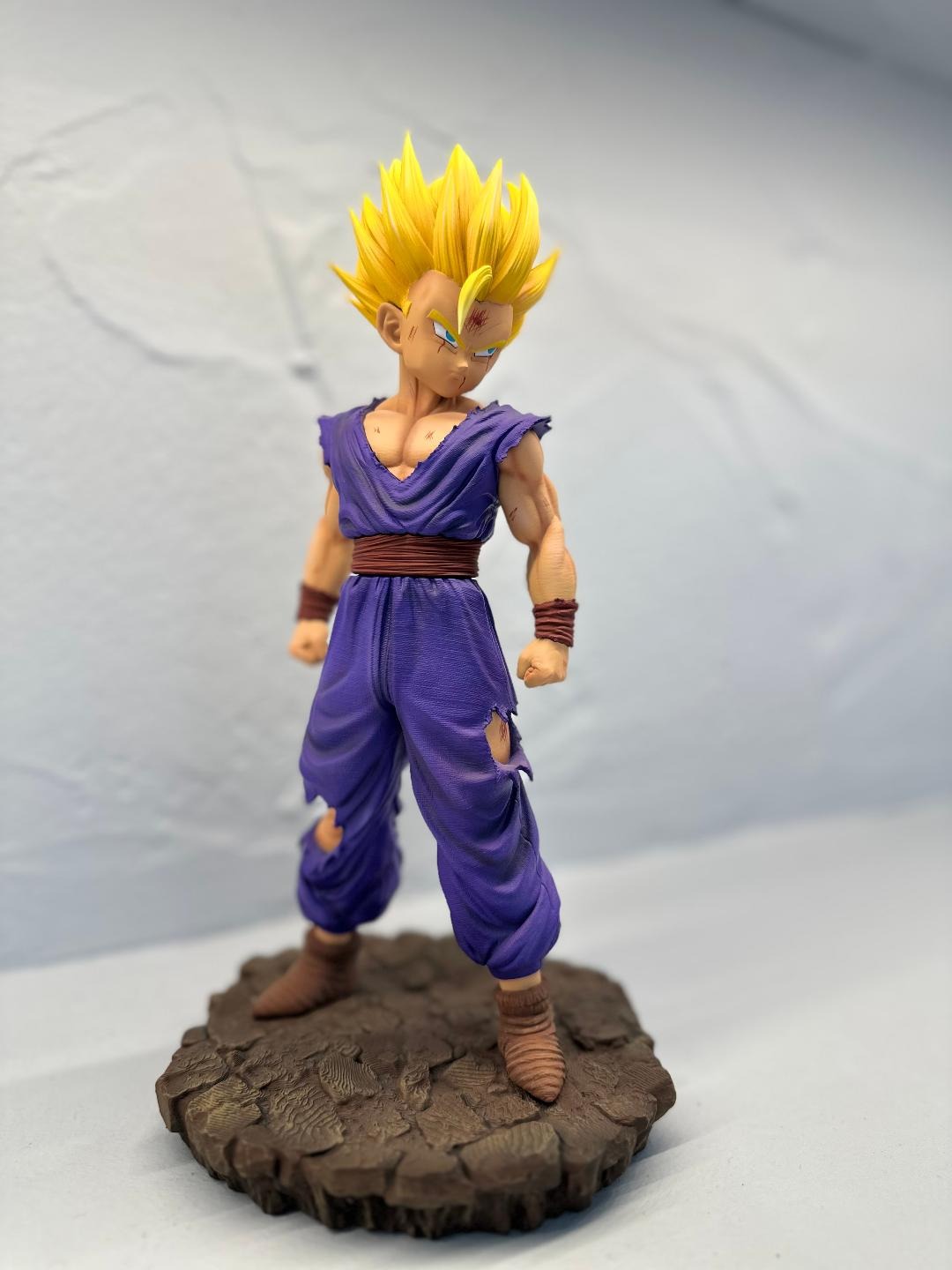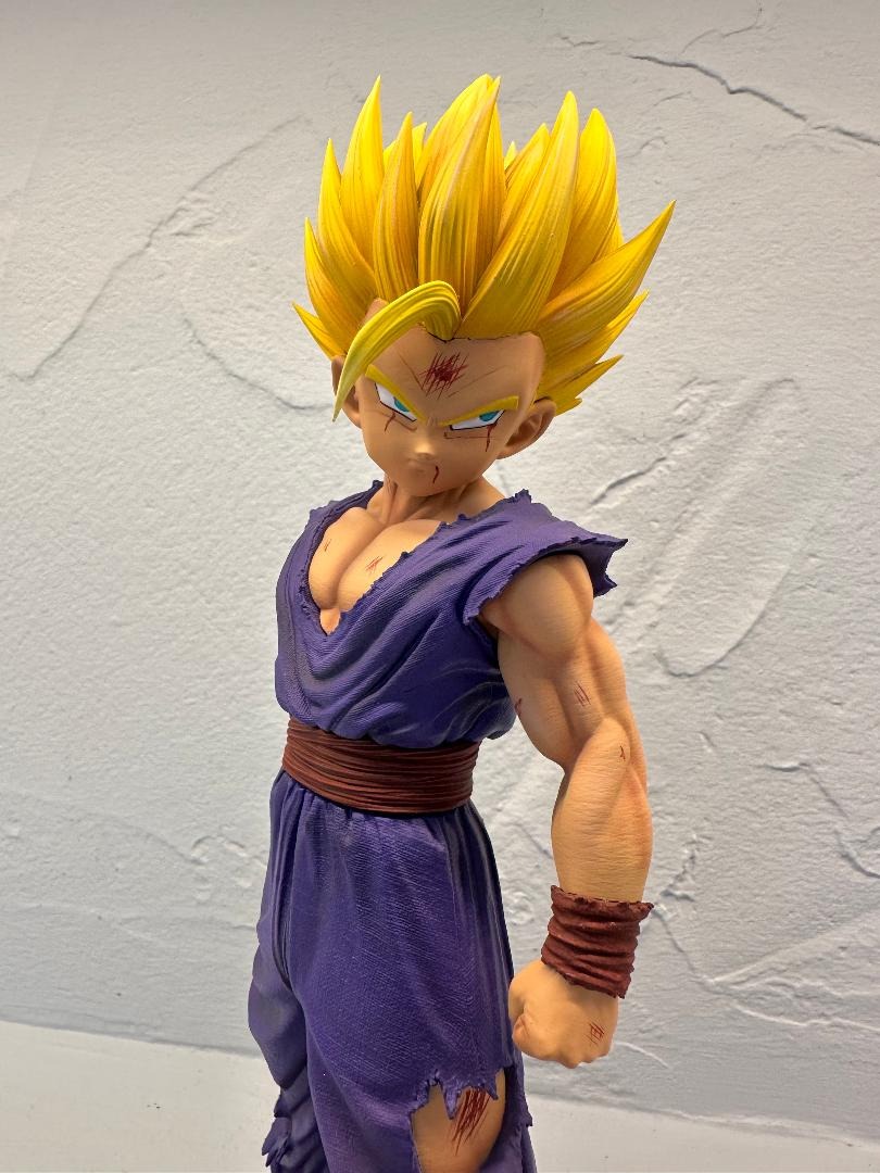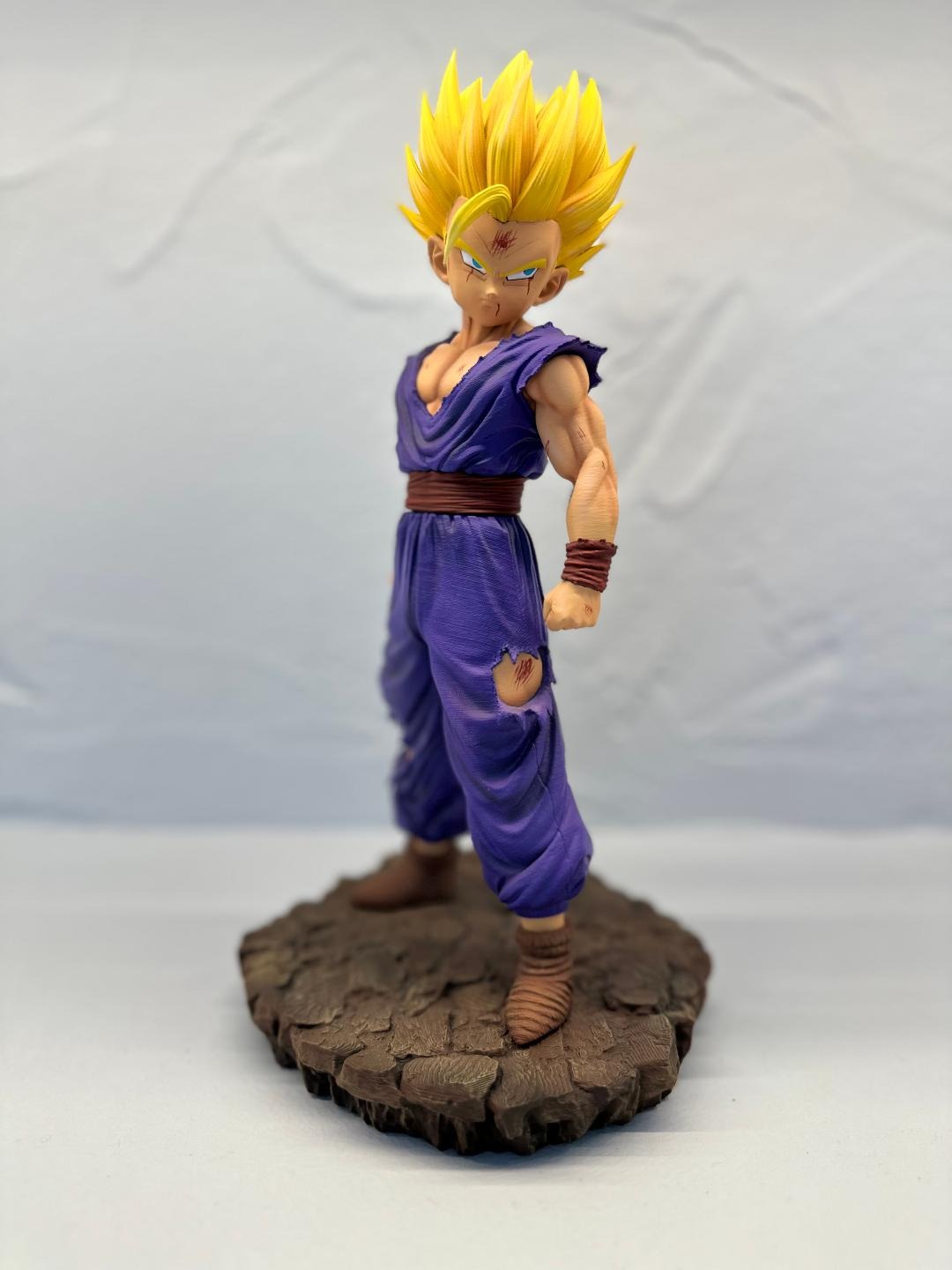 Questa figure rappresenta Gohan ragazzo nella sua trasformazione in Super Sayan II contro il villain Cell: Scultura realizzata in resina e interamente dipinta a mano il che conferisce unicità alla statua e una cura dei dettagli di alta qualità.
