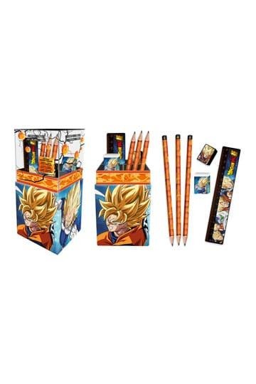 Set cancelleria a tema Dragon Ball contenente: - 3 x matite - 1 x gomma - 1 x righello - 1 x temperamatite - 1 x portamatite