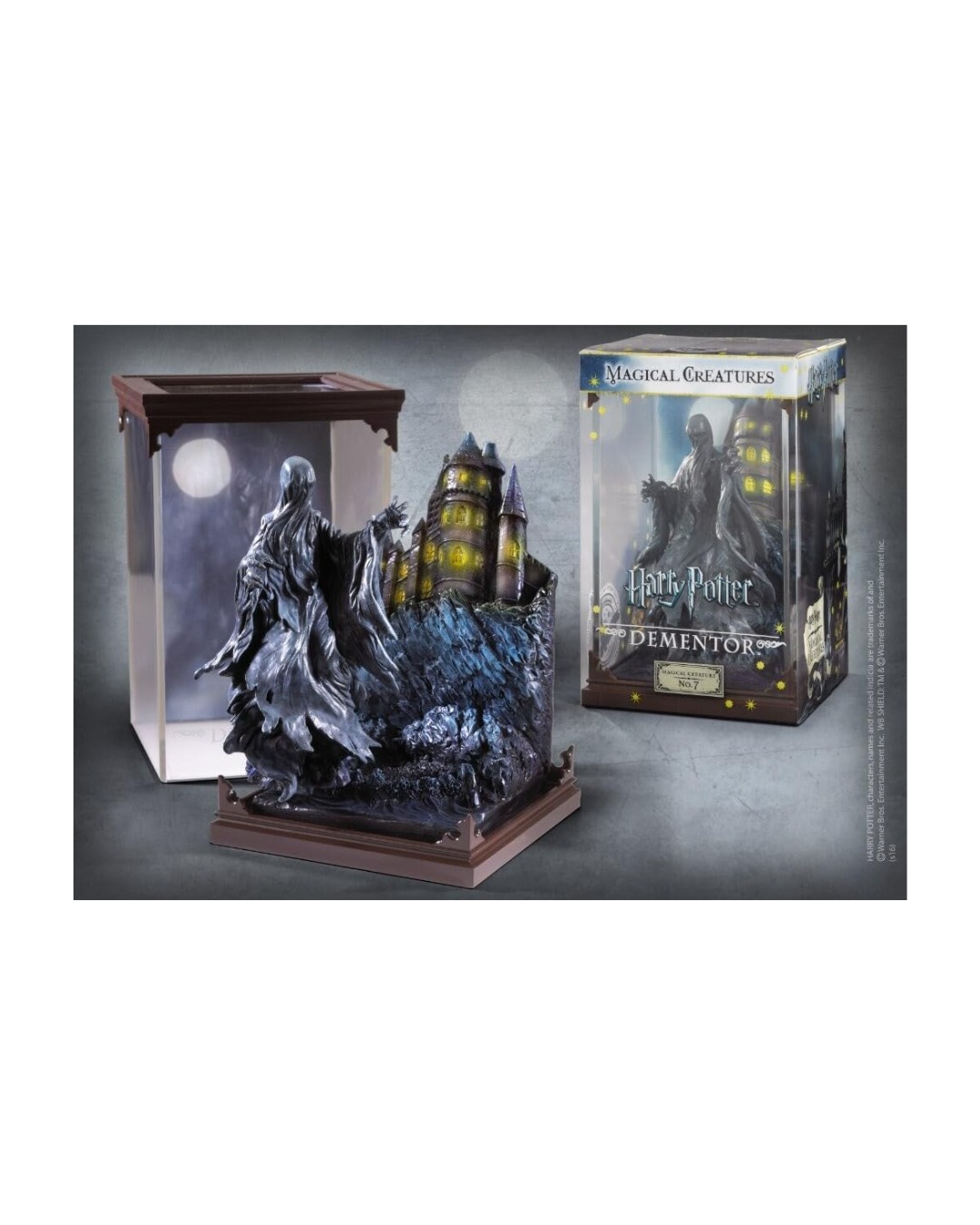 La Noble Collection è orgogliosa di annunciare una nuova gamma di Creature Magiche ispirate alla serie di Harry Potter. Ognuno misura circa 10,5 cm di larghezza per 18,5 cm di altezza nella loro vettoria. Le creature e i diorami possono essere rimossi dalla vetrina.