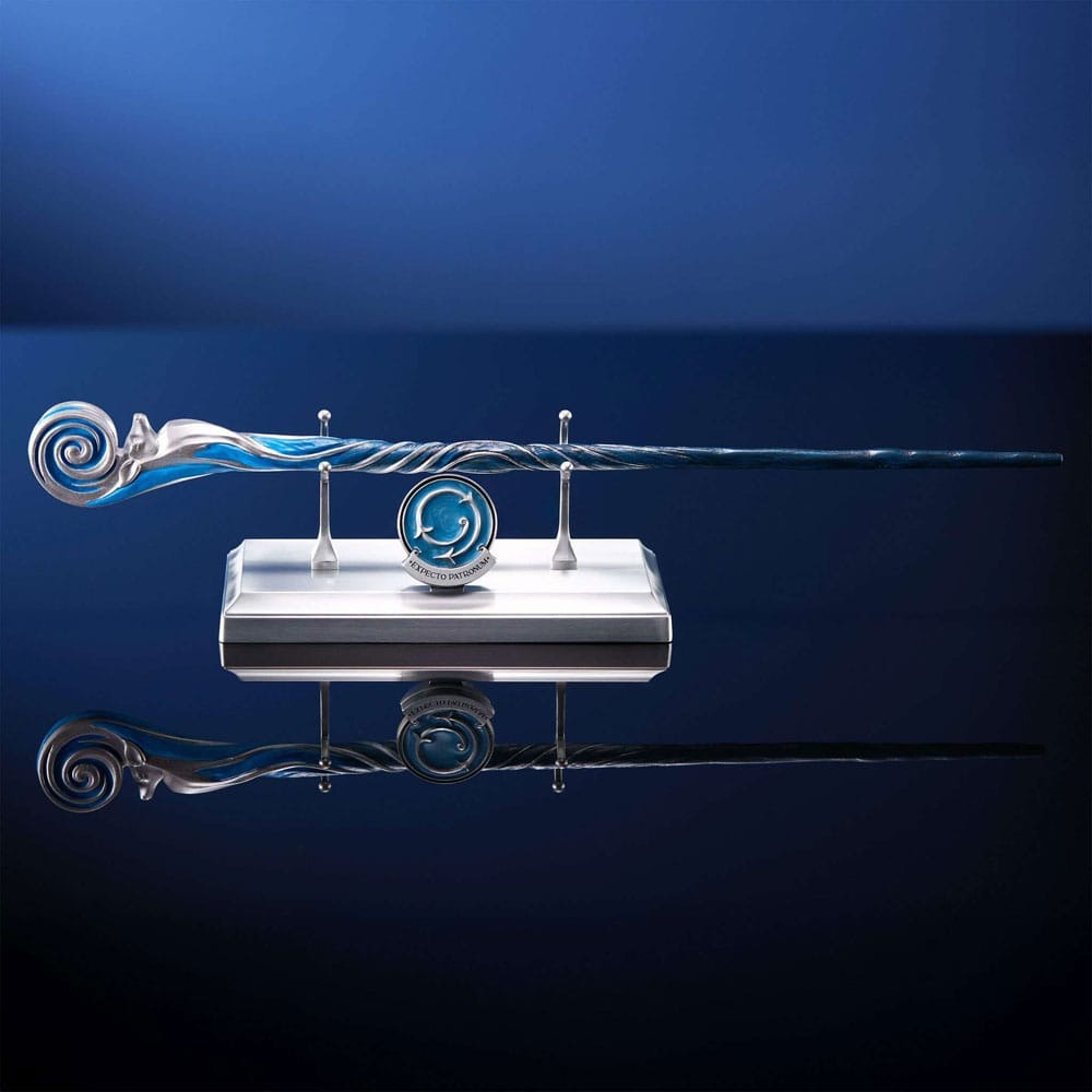 Esponelo con orgoglio con il supporto per bacchette in metallo pressofuso incluso e l'esclusivo spillo per l'Incantesimo Patronus, smaltato in blu e argento e fuso con un disegno a spirale che replica il movimento della mano necessario per lanciare l'incantesimo. Questa bacchetta è per i fan di Harry Potter™ che vogliono abbracciare l'eredità del Patronus.