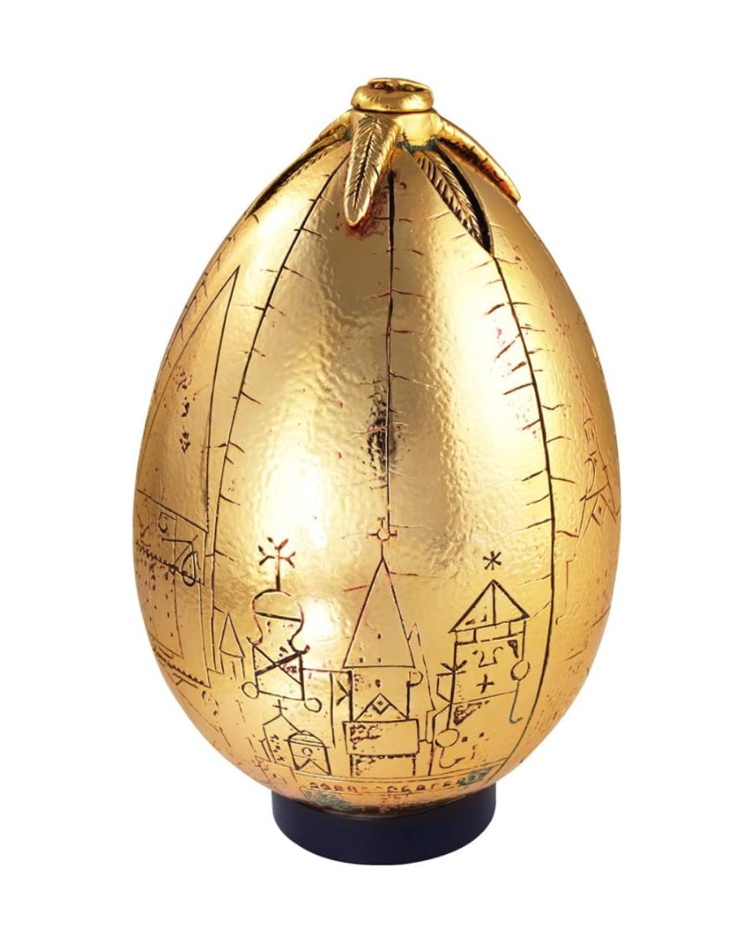 Replica autentica di oggetti di scena. Misura 23 cm di altezza. Realizzato in resina. Dipinta a mano. L'uovo non si apre.