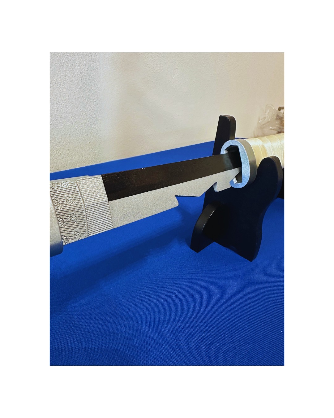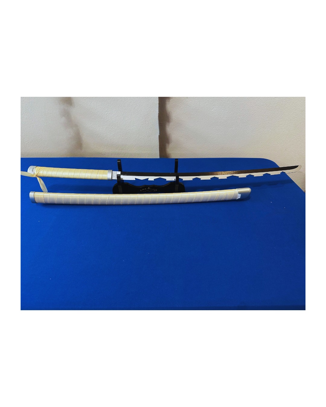 Katana ornamentale ispirata alla katana di Inosuke Hashibira di Demon Slayer, con lama in bamboo.