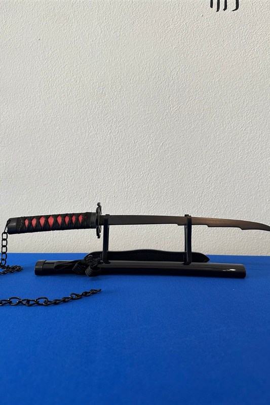 Katana con lama in acciaio, fodero rosso ed impugnatura bianca. Liberamente ispirata a Boruto, sequel di Naruto.