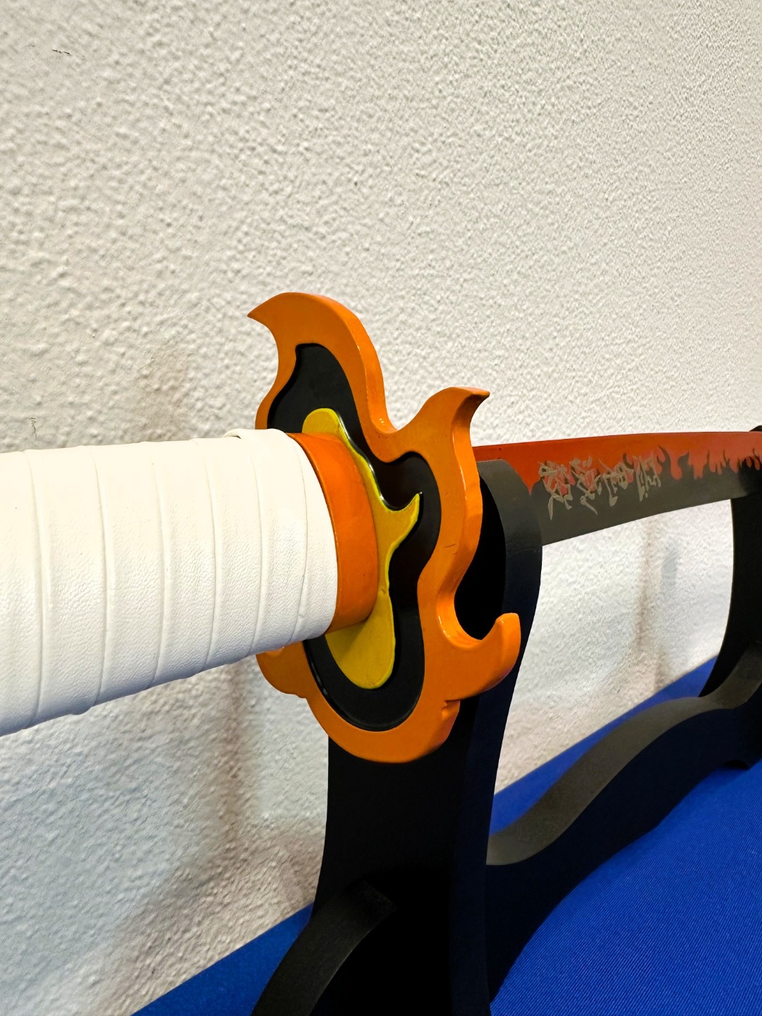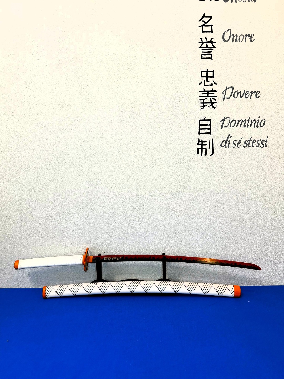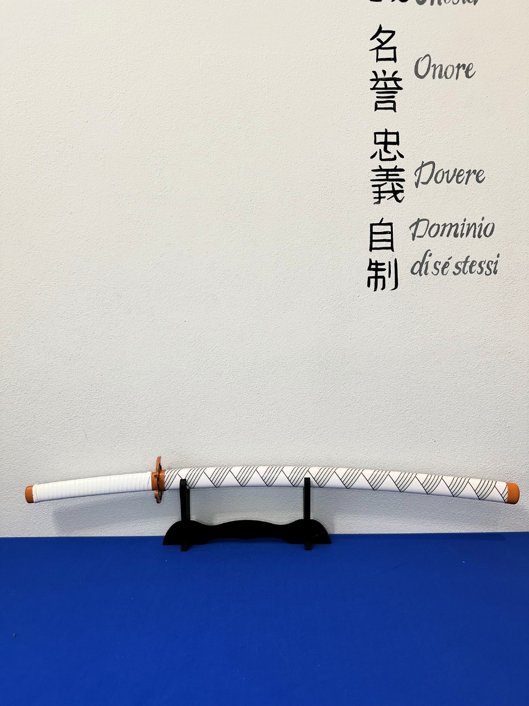 Katana fantasy con lama in acciaio e impugnatura bianca in simil pelle. Liberamente ispirata a Rengoku.