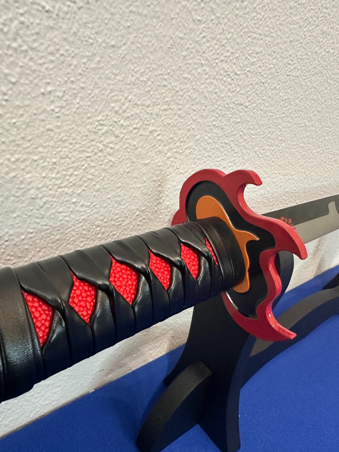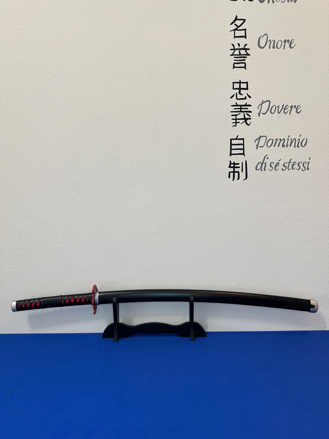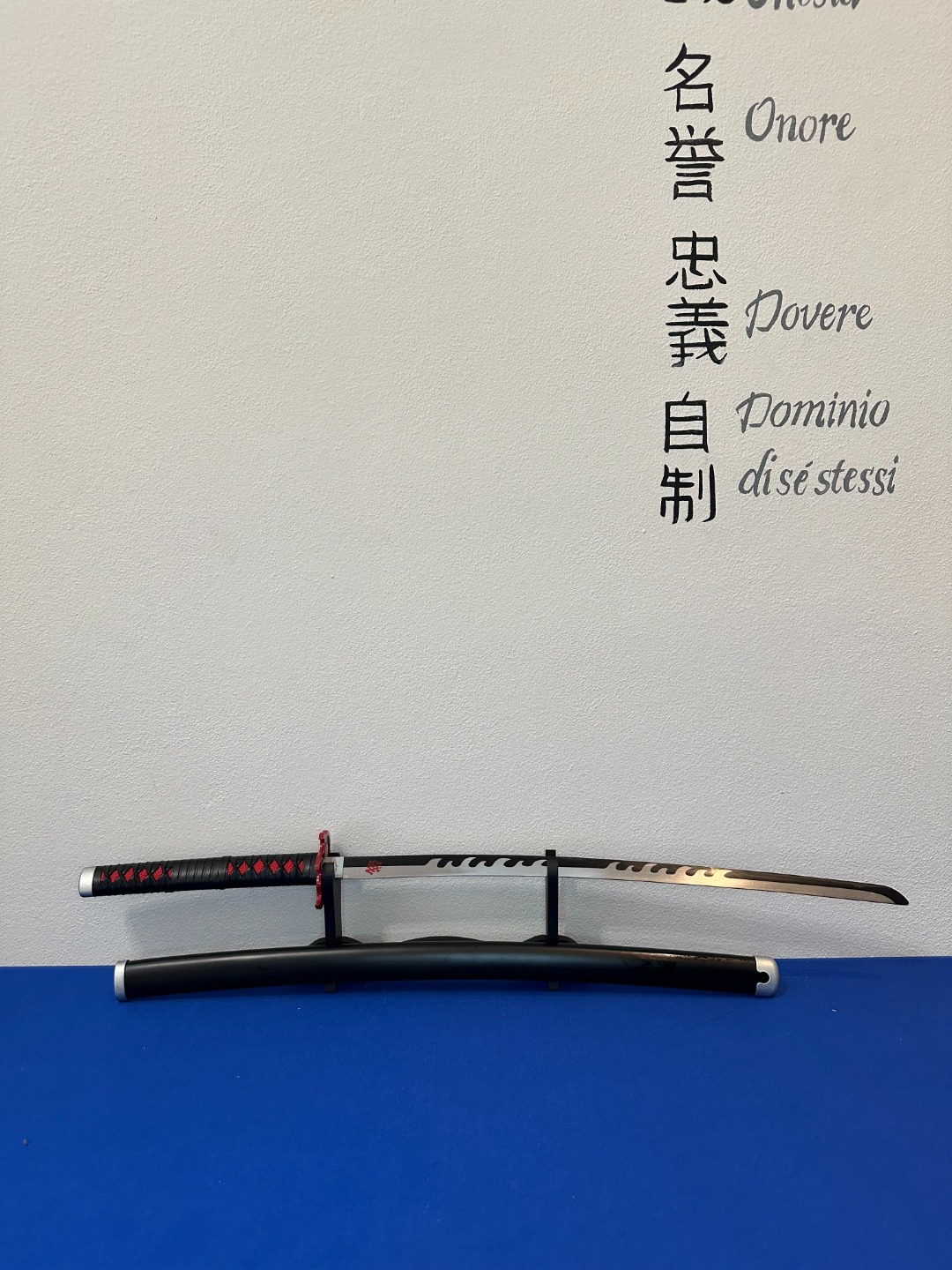 Katana con lama in acciaio e impugnatura in simil pelle nera. Liberamente ispirata a Demon Slayer.