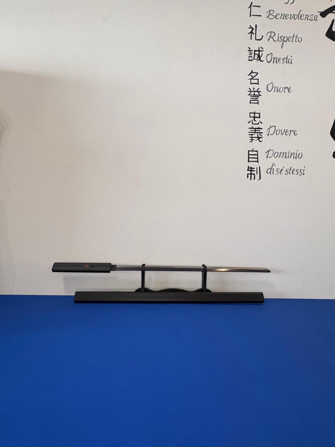 Katana fantasy con impugnatura e fodero in legno nero. Lama in acciaio.