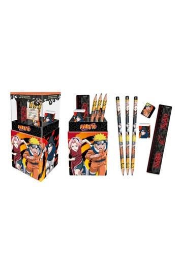 Set di cancelleria a tema Naruto che include: - 3 x matite - 1 x gomma - 1 x righello - 1 x temperamatite - 1 x portamatite