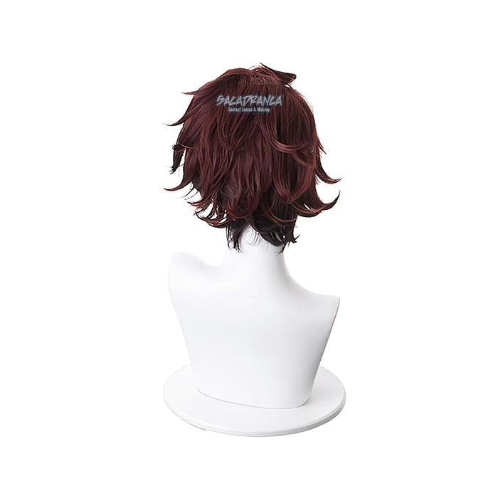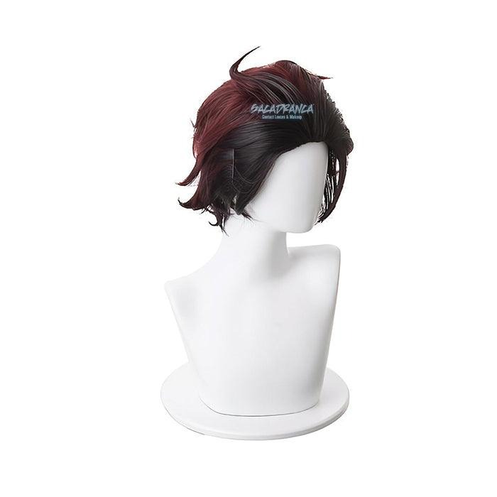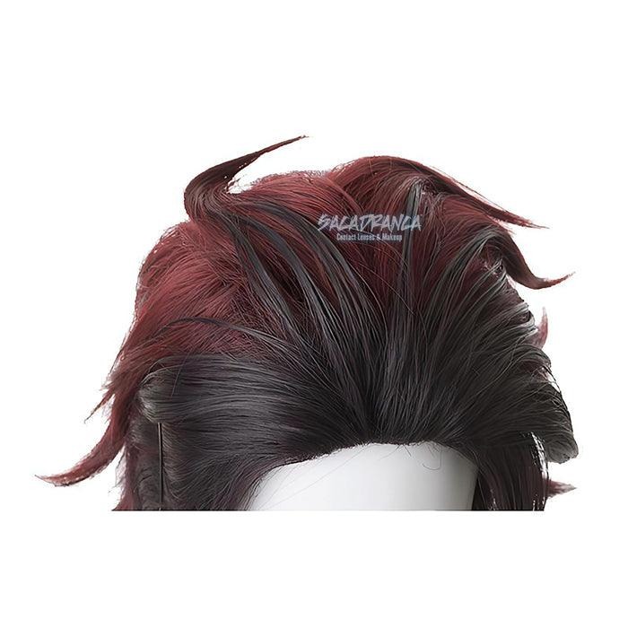Parrucca cosplay ispirata a Kamado Tanjiro di Demon Slayer, realizzata in fibra sintetica ad alta temperatura. Ha una lunghezza di 30 cm, con colore nero e bordeaux e uno stile corto. La misura è unica e regolabile grazie a due ganci nascosti all’interno.