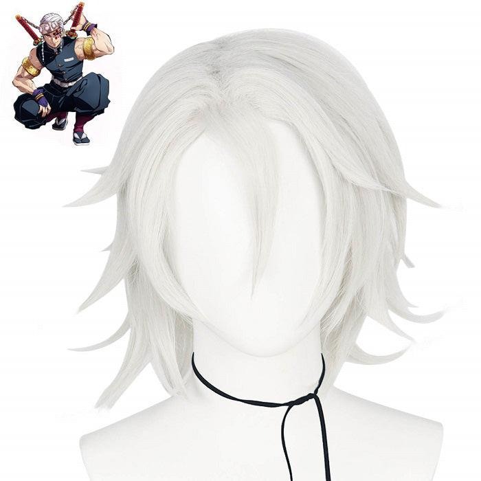 Parrucca cosplay ispirata a Tengen Uzui di Demon Slayer, realizzata in fibra sintetica ad alta temperatura. Ha una lunghezza di 40 cm, colore grigio e uno stile lungo. La misura è unica e regolabile grazie a due ganci nascosti all’interno.