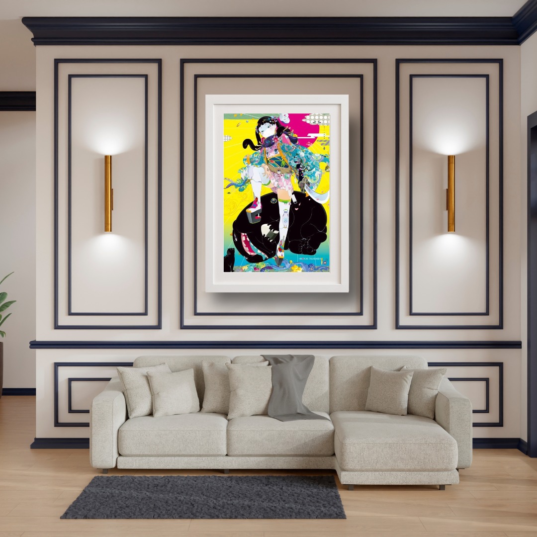 In quest'opere, Hiroyuki Takahashi raffigura una samurai girl contemporanea, simbolo di forza e femminilità. L'abbigliamento mescola kimono tradizionale, accessori kawaii e dettagli futuristici, in un'esplosione di colori e riferimenti pop. Sullo sfondo, elementi psichedelici e creature surreali evocani lo stile Superflat.