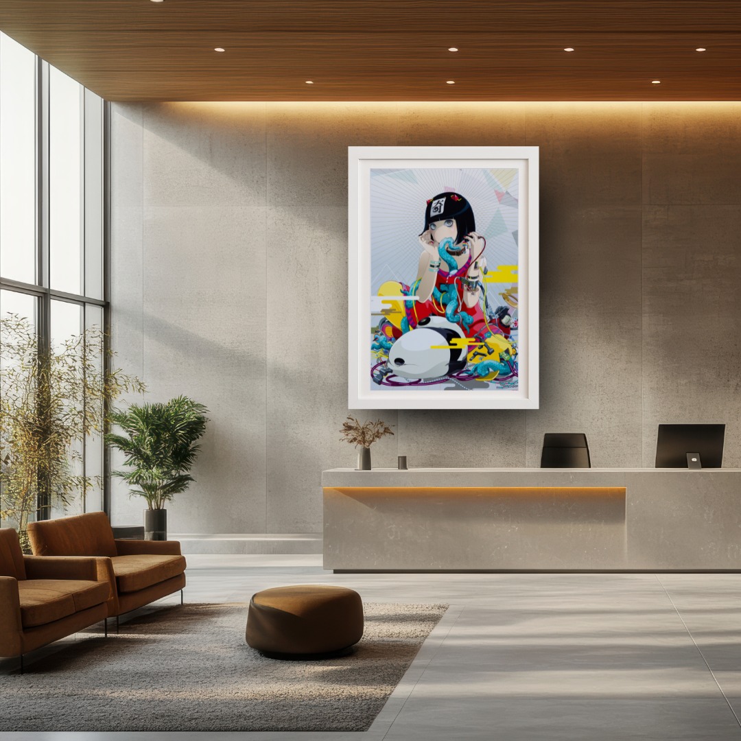 La cyber girl è avvolta da tentacoli che sembrano fuoriuscire dal suo stesso corpo, tra i quali emerge la figura di una gigantesca piovra. Nonostante la scena surreali e perturbante, il suo volto rimane impassibile, privo di stupore o paura.