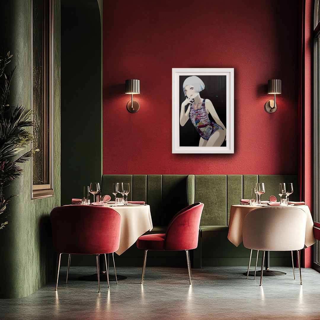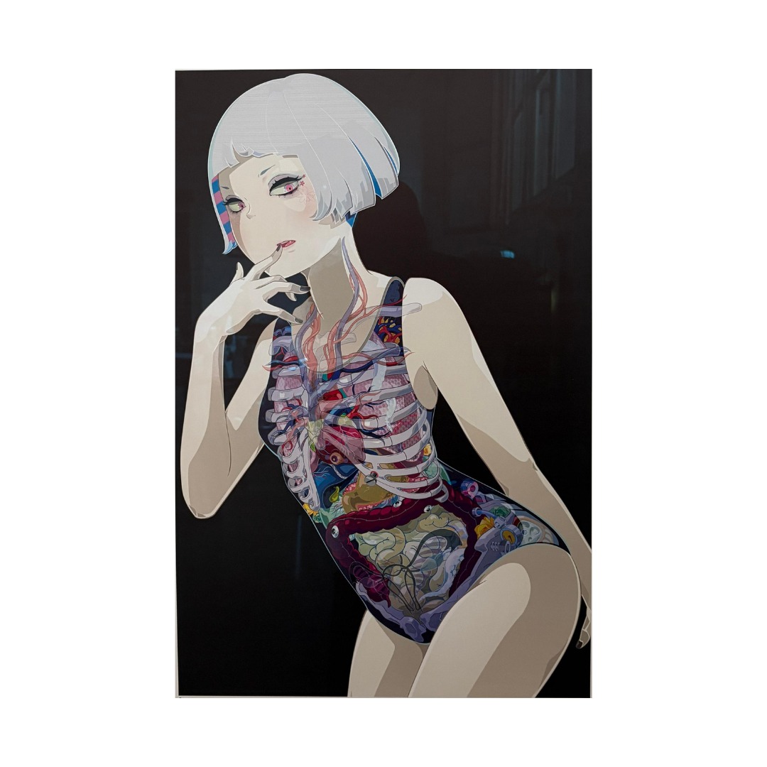 In quest'opera, Takahashi ritrae una giovane ragazza in costume da bagno, simili a quelli comunemente indossati nelle scuole e nei college giapponesi. Tuttavia, l'indumento di distingue per un dettaglio insolito: una decorazione che riproduce un'immagine radiografica del corpo femminile. La ragazza, con uno sguardo malizioso rivolto all'osservatore, diventa il fulcro di una composizione in cui si riflette la sensibilità di Takahashi come fashion designer e stylist.
